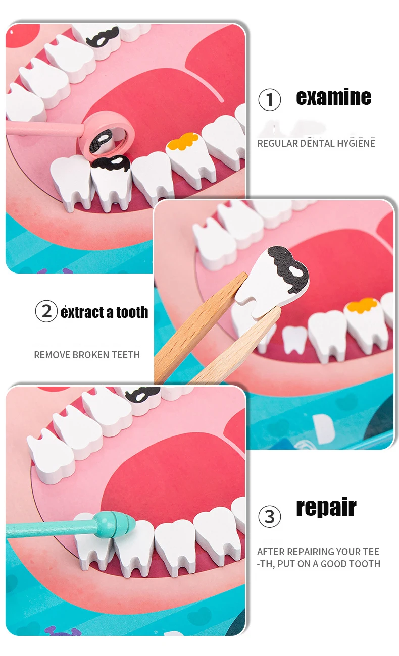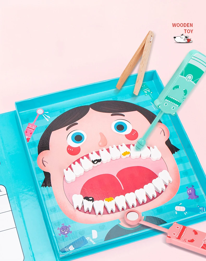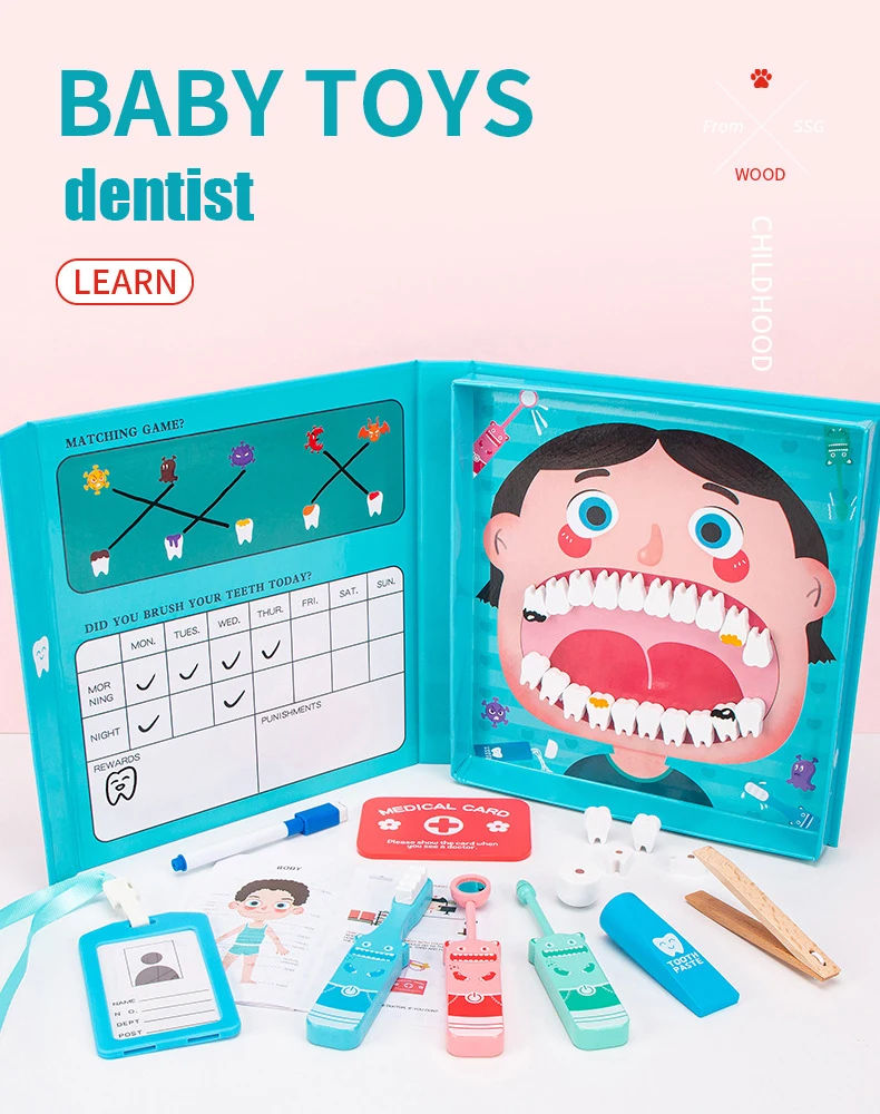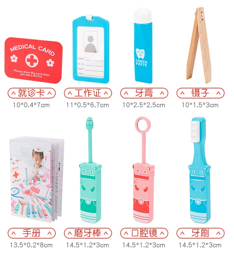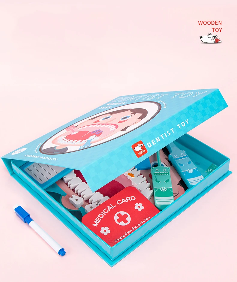 Wooden Pretend Play Dentist Educationa Toys for Children Medical Simulation Medicine Chest Set for Kids Interest Development Kit