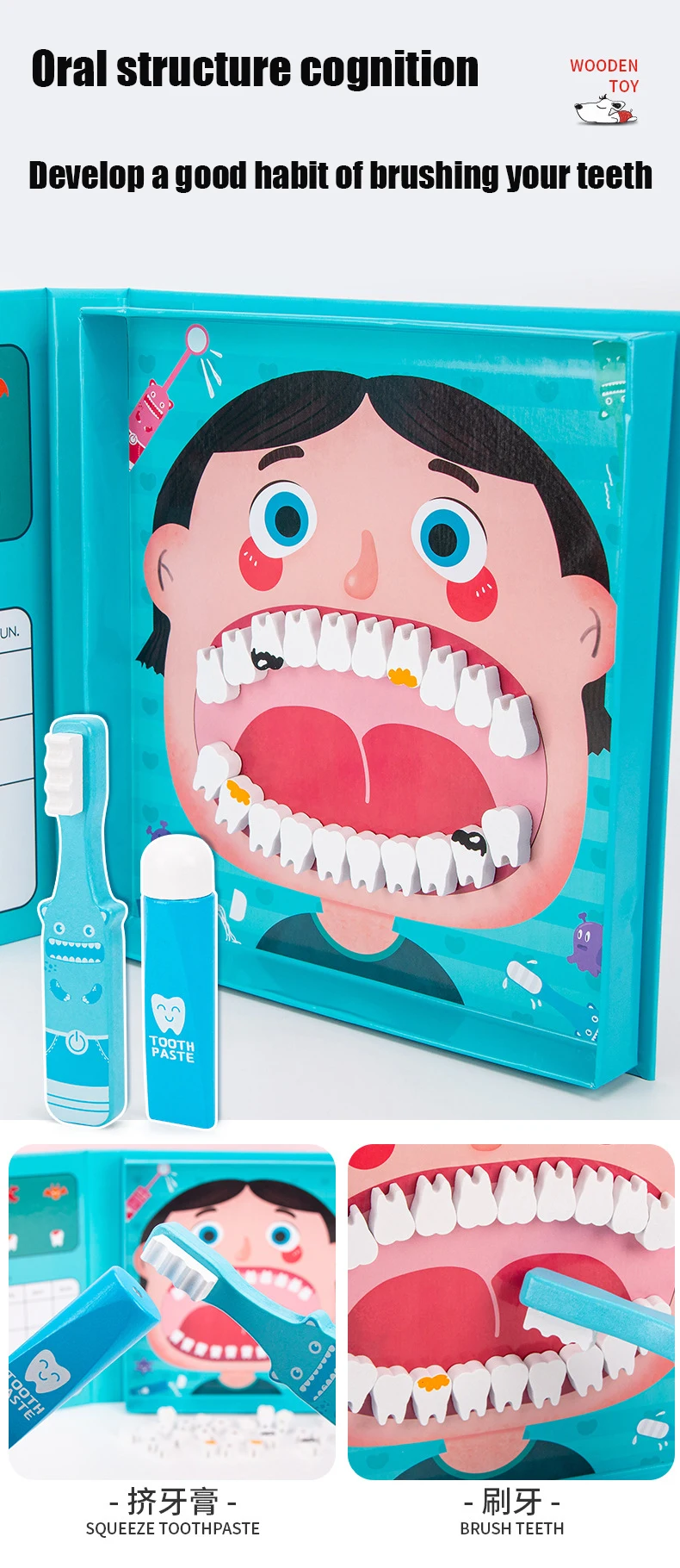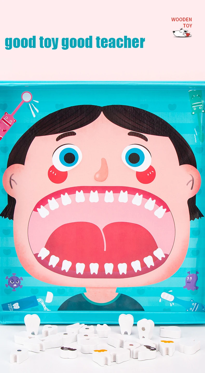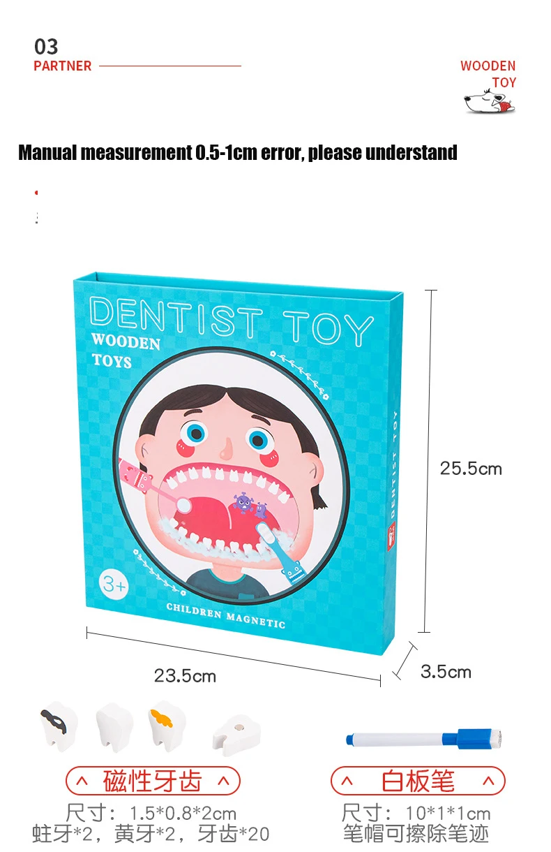 Wooden Pretend Play Dentist Educationa Toys for Children Medical Simulation Medicine Chest Set for Kids Interest Development Kit